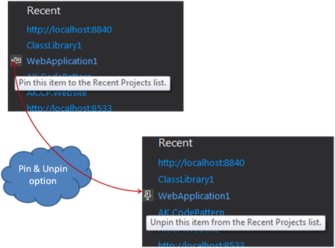 Also, Visual Studio 2012 has a nice look of pin and unpin feature ( its not a new feature as it was available with VS-2010 also)